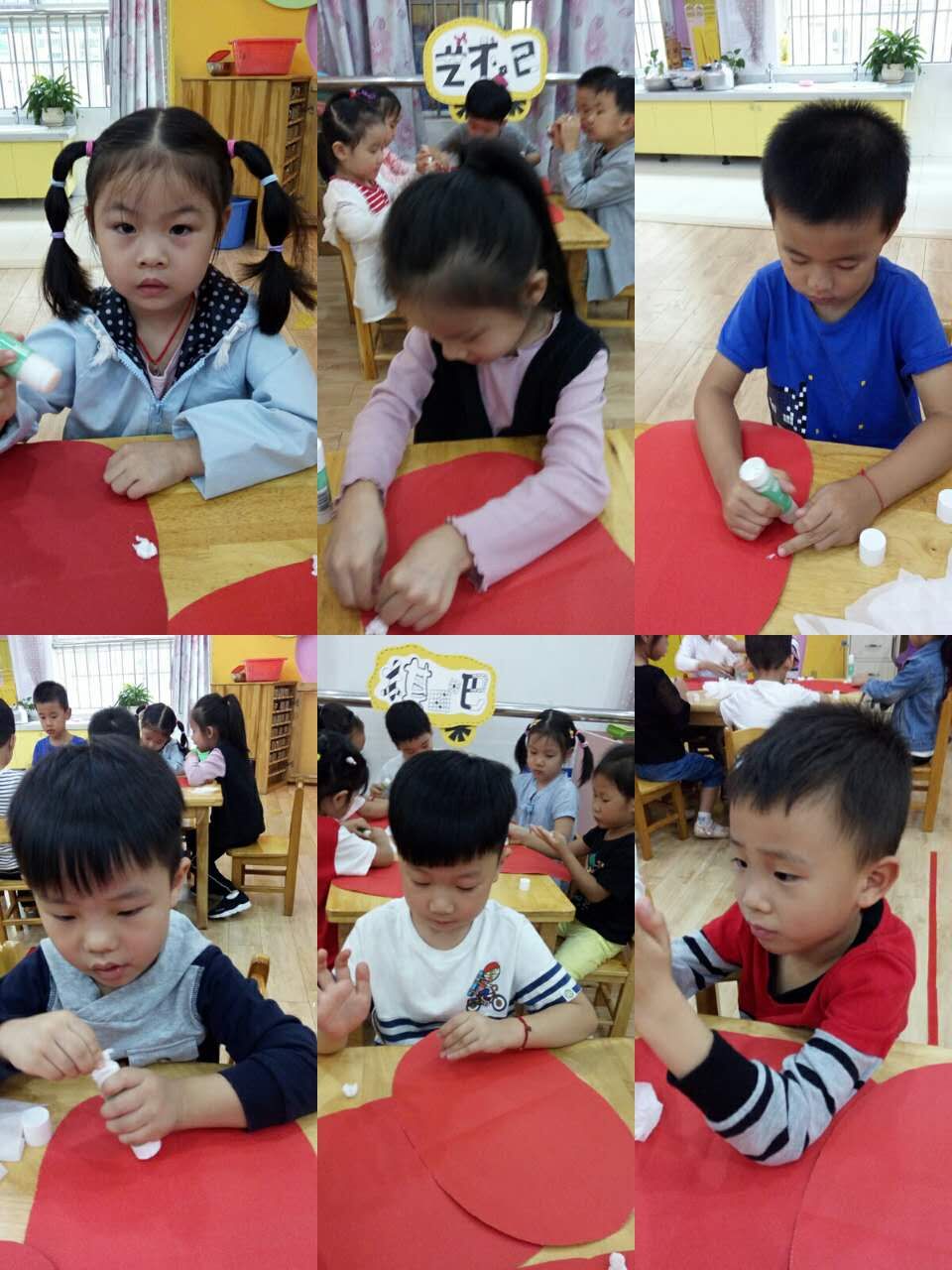 大班小朋友选择特殊的材料餐巾纸,通过搓揉餐巾纸成团,按照牙齿的排列顺序粘贴,小朋友的不亦乐乎!瞧,我们的作品很棒吧!