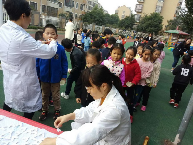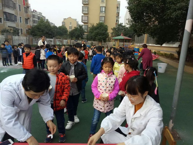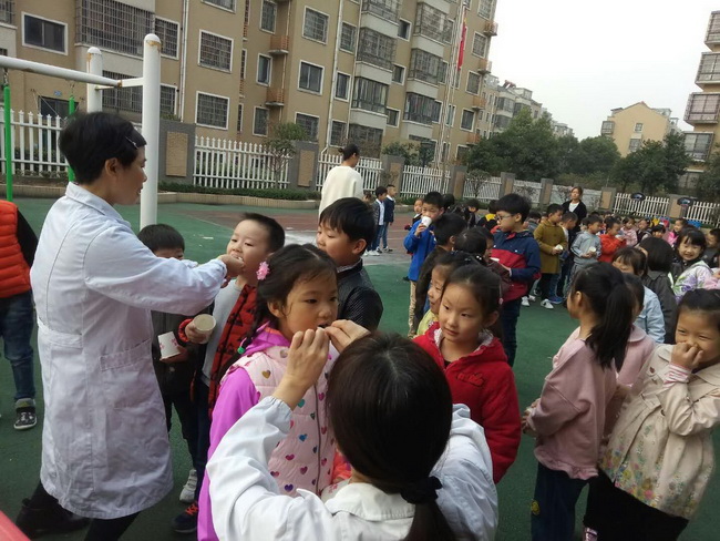 每学期的幼儿口腔保健主要是以“氟化泡沫”对幼儿牙齿进行涂氟预防龋齿,还可以对牙髓炎、牙根尖炎、牙周病等起到预防作用。儿保医生们还特别选用了深受幼儿喜爱的水果口味氟化泡沫,让幼儿乐于接受。在保健老师与教师们积极组织与医务人员配合下,孩子们都很勇敢, 张大嘴巴配合医生阿姨对牙齿涂氟,孩子们牙齿涂完氟用纸杯接着口水,防止治疗期间坚持不到时间吐口水,这样不仅维护了整个场地的环境卫生 也为下一批孩子做治疗有个干净的场地。整个活动井然有序。