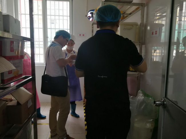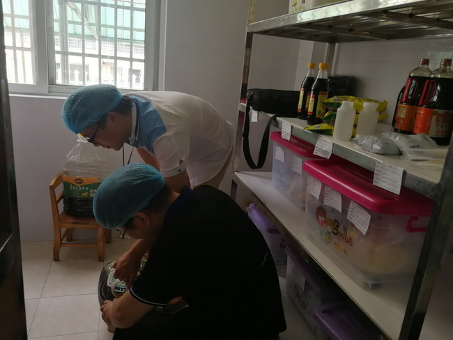 检查组一行人对幼儿园食堂进行了专项突击检查,重点对米、油、酱油、料酒等进行了详细的记录和抽样工作,在检测中,园所后勤部门工作人员积极配合监督组一行人的工作,顺利完成了此项工作,并获得了检查人员的积极反馈,他们一致表示:园所食堂能遵照有关规章制度的要求,自觉履行食品安全卫生规定,在食品原料方面能做到层层把关,体现了园所规范化的办园宗旨和科学化的安全管理。